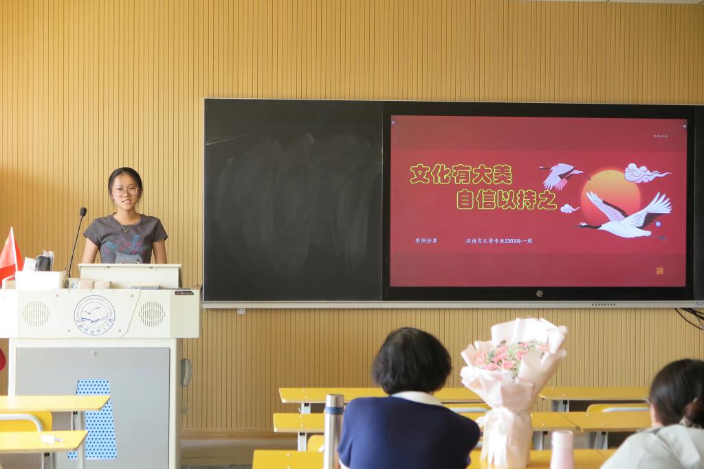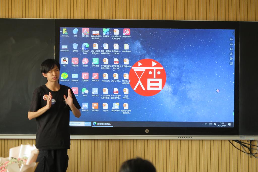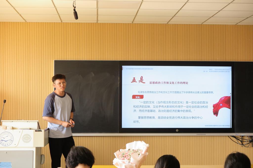 在员工展示过程中,物流2302班孔维以《论持久战矛盾光辉》为题;财管2302班罗璇以《百年征程,波澜壮阔》为题;电子2202班李佳鑫以《五四精神长存,中国风华正茂》为题;汉本2303班孙一然以《文化有大美,自信以持之》为题;信息2101班马郡镁以《追求远大理想,坚定崇高信念》为题分别进行了精彩的课堂展示,充分表现出了新时代老员工的马克思主义理论素养和青春激昂的风采。