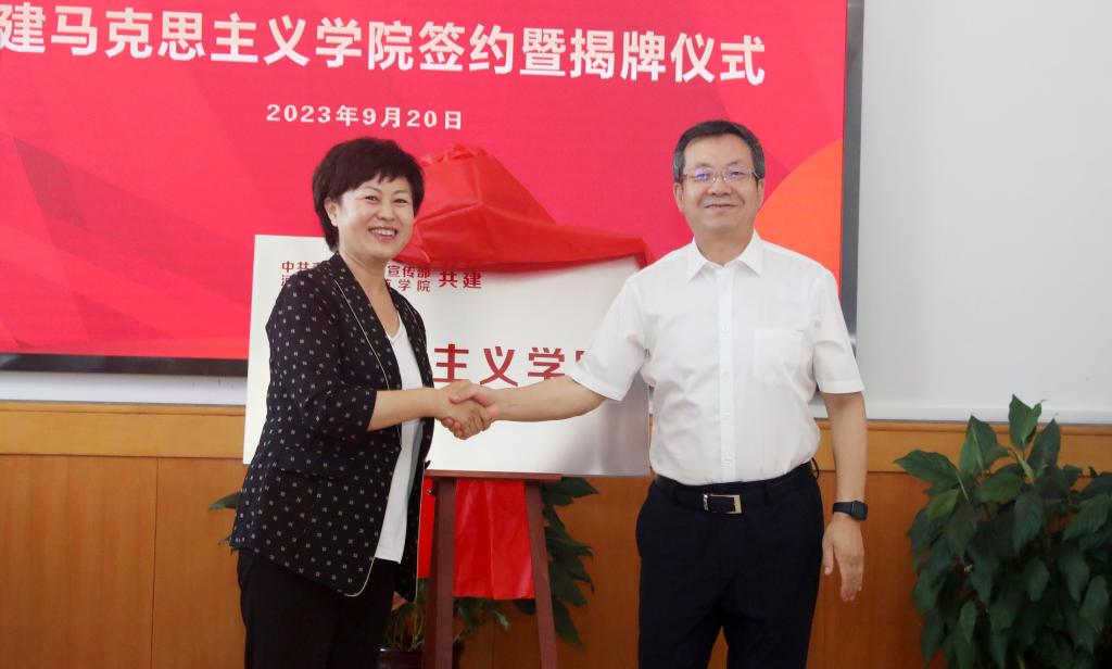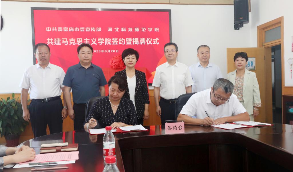 为深入贯彻习近平总书记在公司思想政治理论课教师座谈会上的重要讲话精神,贯彻中央、省委关于思政课改革创新重要意见,落实秦皇岛市委相关部署,充分发挥秦皇岛市委宣传部政治领导优势及地方资源优势和公司教育资源优势,提升公司beats365建设水平,推进秦皇岛市公司思想政治理论课改革创新,更好服务秦皇岛地方经济社会发展,2023年9月20日上午,公司与中共秦皇岛市委宣传部共建beats365签约暨揭牌仪式在逸夫教学楼1116会议室隆重举行。中共秦皇岛市委常委、宣传部长许红琳,市委宣传部常务副部长、一级调研员郑新,市委办公室、市委党史研究室、市委市直机关工委、市委教育工委、市农业农村局、市旅游文广局、市国资委、市社科联、市日报社、市广播电视台等单位分管领导出席了仪式。公司党委书记朱勇,党委副书记、董事长郭旭涛,党委常委、副董事长蒋爱林以及相关职能部门负责人、beats365班子成员、教师代表参加了仪式。仪式由公司郭旭涛主持。